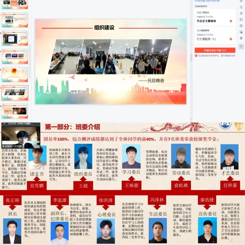 本次答辩共有16个团支部参加,疫情情况下,本次优秀团支部答辩首次采取线上答辩形式,各支部代表通过屏幕共享,利用PPT、文字、音频、视频等多种形式展示支部良好风貌,对支部的组成、建设、发展概况及未来发展等情况进行叙述。答辩结束后,各评审老师针对展示内容和支部实际情况进行匿名投票。