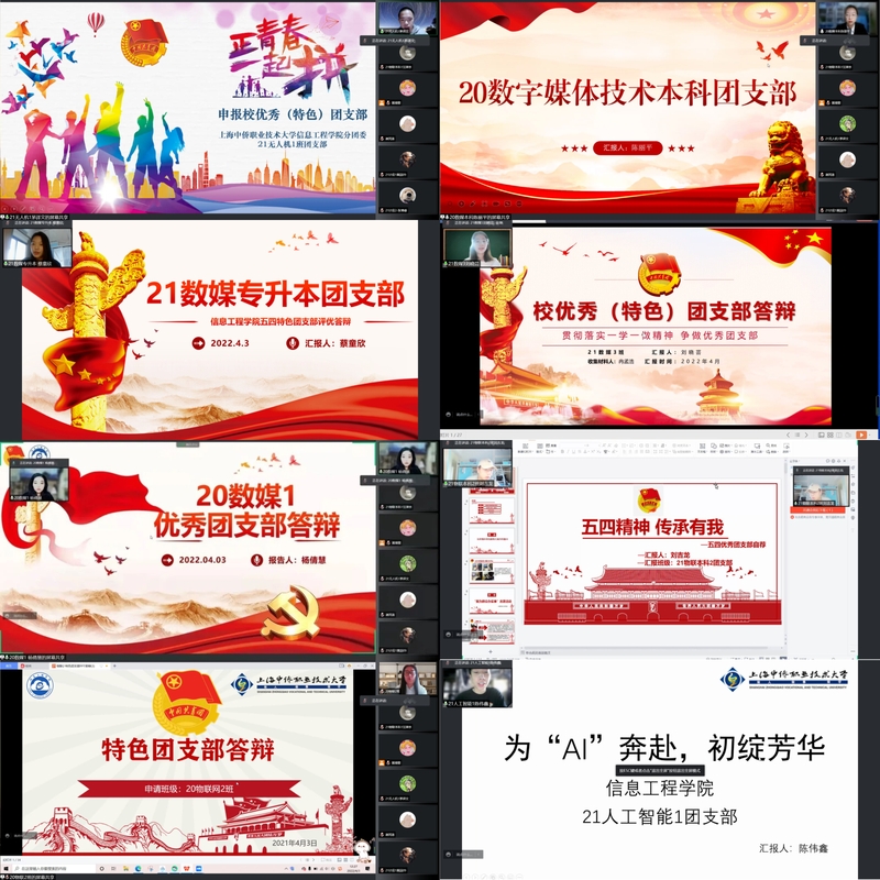 为激励各团支部和广大团员团干勤奋学习、扎实工作,进一步发挥共青团在大学生思想工作中的先锋作用,信息工程学院优秀(特色)团支部答辩于2022年4月3日中午12:00以线上腾讯会议的方式开展。