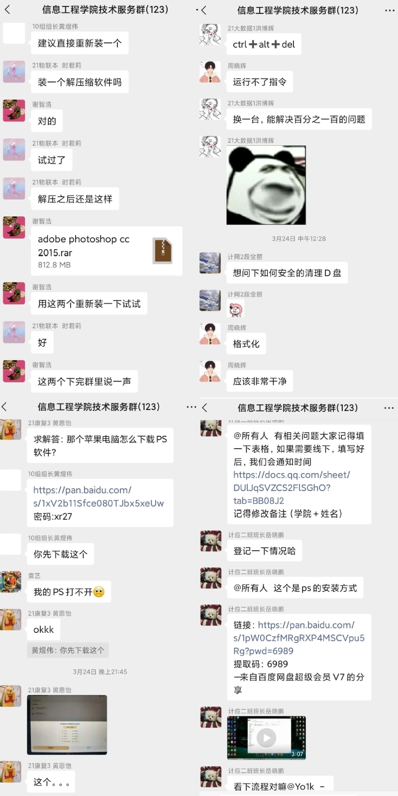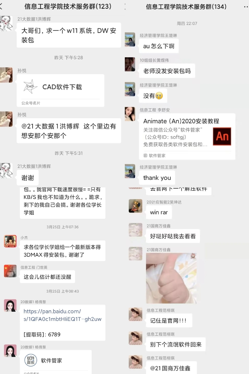 此次活动主要为中侨学子安装所需软件并为大家答疑解惑。学生志愿者们积极准备、明确分工,提前准备了软件安装工具、系统盘等活动开展所需用品。本次活动主要通过线上公众号扫码进群的方式为大家解决问题,个别较复杂的问题通过预约线下解决。