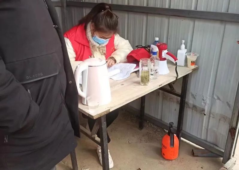 我们一共有五名志愿者,都在尽自己的微薄之力。社区给我们安排的工作就是每天都卡点值班,登记好外来车辆和人员的信息。每一辆外来车辆我们都要检查他们的健康码和行程码,一旦发现异常就要上报并且劝返。过年时候从外地回来的人员也比较多,我们要清楚地统计每一个返乡人员的健康信息。还有一些不认字、不会使用老年机的老人,我们不仅要耐心地给他们讲解,而且也要嘱咐他们一定要居家隔离,不能外出。由于返乡人口的数量较多,我们社区还安排每人每周必须要做三次核酸,基本上是两天一次。社区的干部年龄都比较大了,基本上是我们志愿者帮忙做一些核酸需要的工作。医护人员也能力有限,我们志愿者在现场就维护秩序,帮忙扫码。每个人都在尽自己力量守护一方平安。