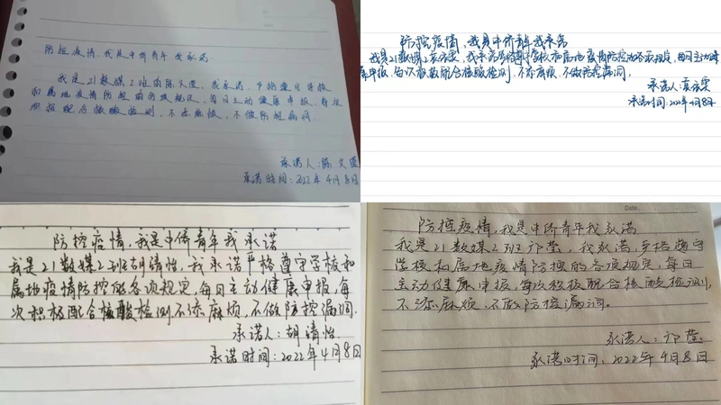 此外,各班也发起了“防控疫情,我是中侨青年我承诺”的承诺活动。作为中侨青年的我们应该配合做好一切防疫工作。