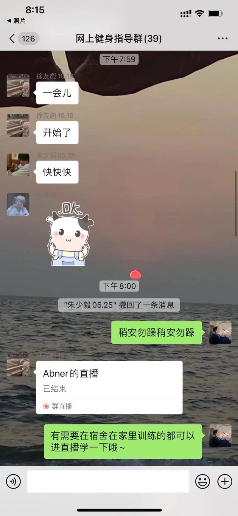近期由于形势复杂的疫情,同学们呢由线下上课转为线上网课,为加强同学们网课期间的身体素质锻炼,信息工程学院入党积极分子们自发地在短视频平台直播发起“在宿舍也能好好健身”教学引发关注。直播中,负责教学的同学和线上观看直播的同学进行连线互动。