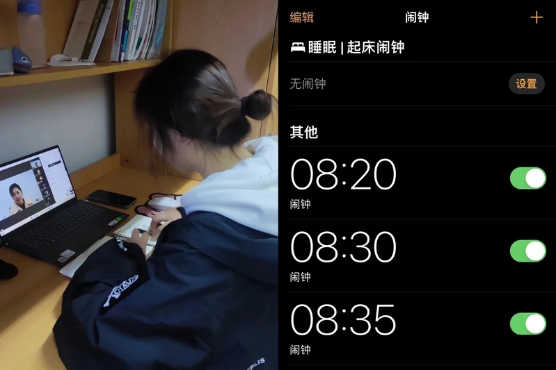 满眼不堪三月喜 举头已觉千山绿 面对严峻的疫情形式 我们开启了网上教学模式 来看看疫情下信工学子们的一天吧 清晨的闹钟响起 揉揉惺忪的睡眼 信工学子们准备好教材准备上课 美好的一天从这里开始
