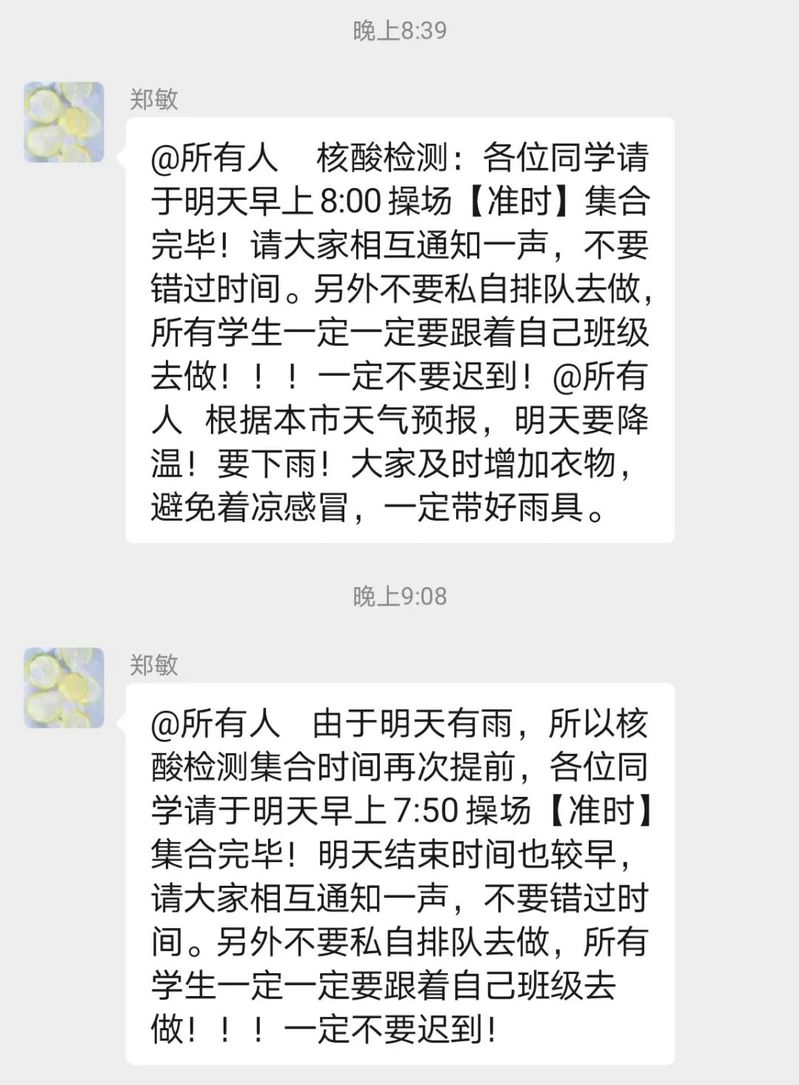 老师的“爱” 每天都在身边陪伴我们的老师 此时更像我们的“父母” 他们白天组织大家有序排队进行核酸 晚上细心提醒同学们注意天气不要感冒 有空也要去关心一下身边的老师啊
