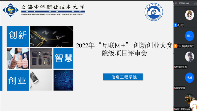 为了进一步激发学生参赛热情、提升项目质量、在参赛中得到学习与锻炼,4月15日18:30,信息工程学院通过腾讯会议举行了第八届“互联网+”创新创业大赛院级项目评审会,学院党政领导班子和项目指导老师以及各参赛项目团队参加了会议,会议由党总支书记刘群老师主持。