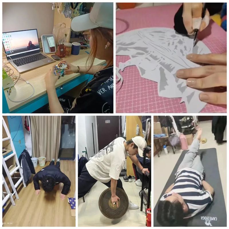 入党积极分子自发地在短视频平台直播发起“在宿舍也能好好健身”教学引发关注。直播中,负责教学的同学和线上观看直播的同学进行连线互动。同学们按照视频演示的动作在宿舍进行锻炼。学习之余也可以做一些自己感兴趣的事情,如手工活动操作简单、耗时较少、成品美丽;用彩色的积木成为了独享的乐趣,每当望见自己精心拼凑起的“城堡”;也会到操场去放飞风筝,舒缓下紧张情绪。这些活动在一定程度上能够填充和丰富了大家的课余生活,带动全院一起运动,强身健体,保持良好的精神面貌和学习状态。