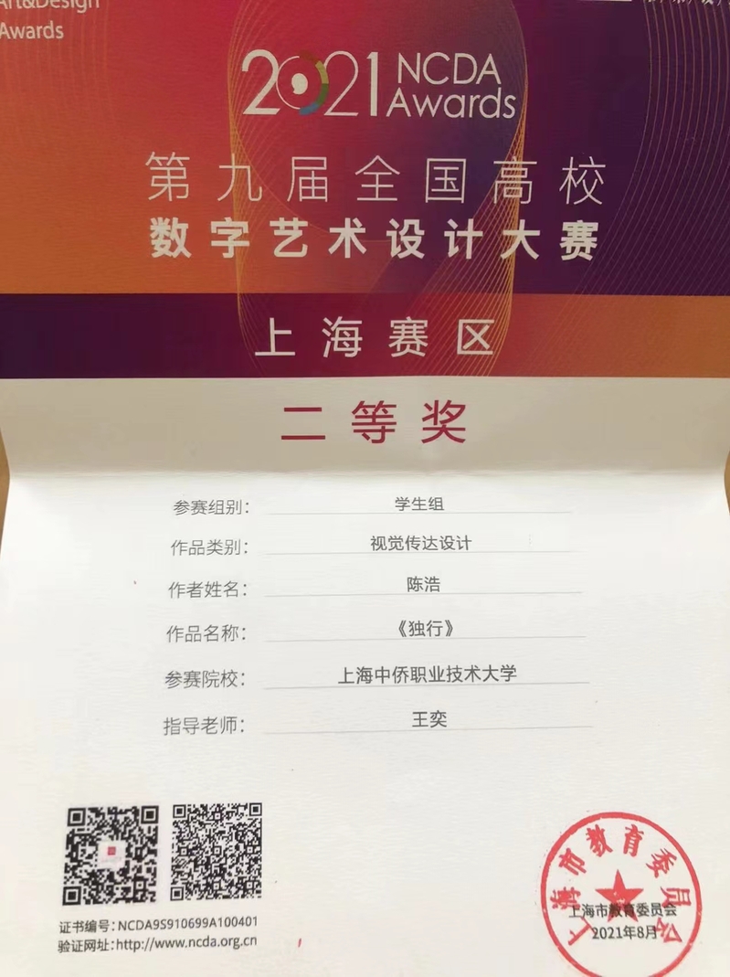 本届大赛共有1456所高校参加,参赛作品近12万幅。我院数字媒体技术专业学生陈浩同学荣获二等奖。