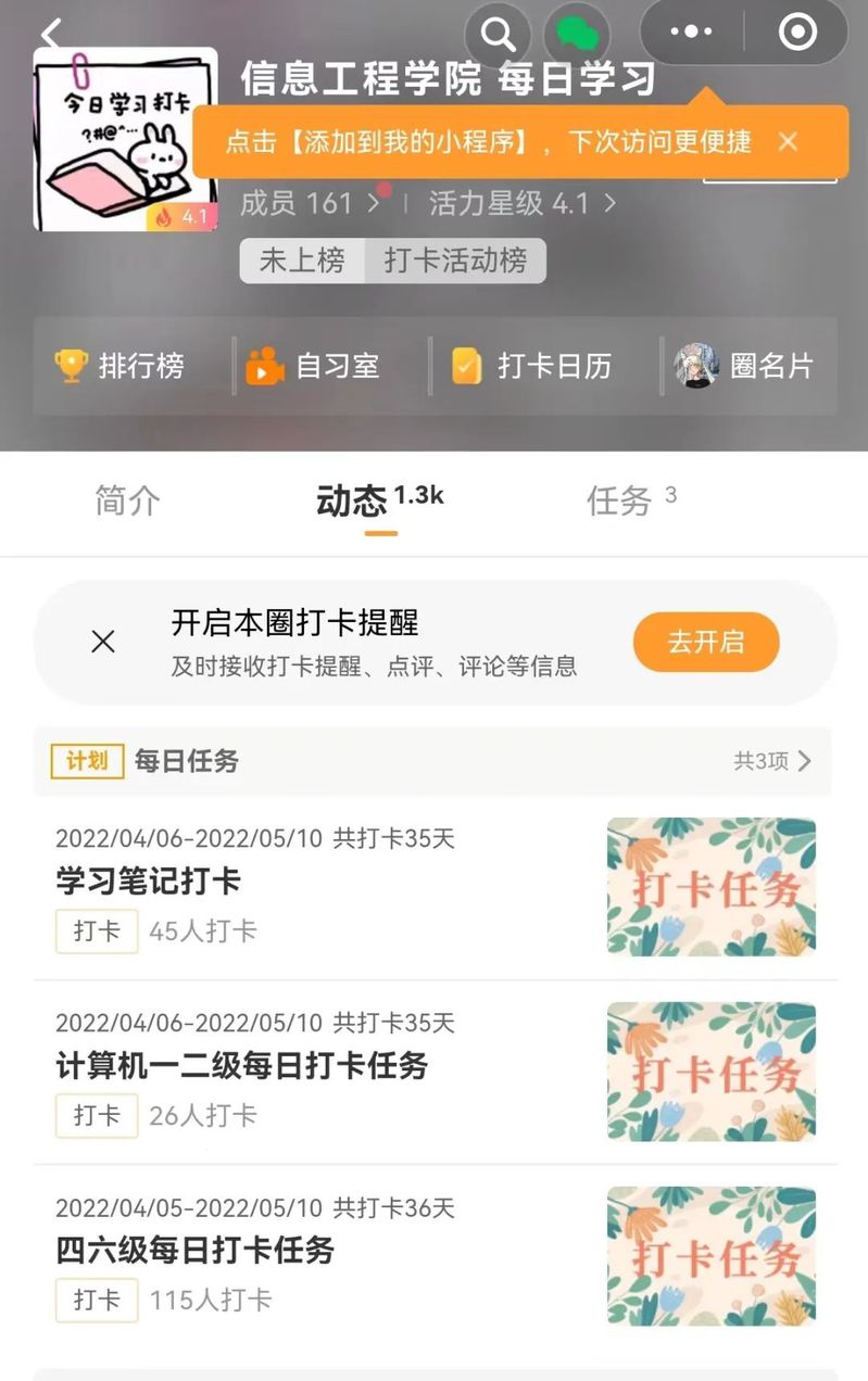 下面就先让我们来看看在此次活动中,目前打卡得较为突出的同学吧!