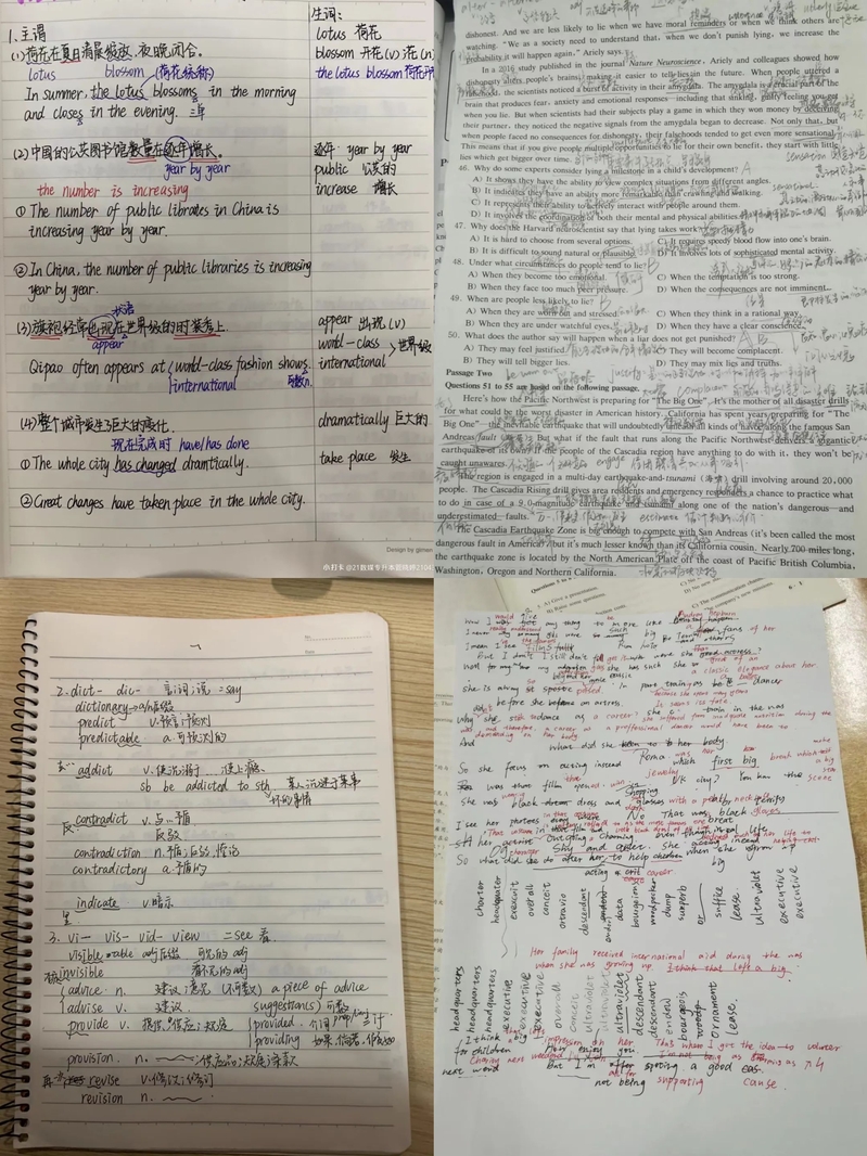 部分同学对备考有些许迷茫,不知该如何复习。学姐给出建议:每天要保证词汇量的积累,可以用构词法,积累一些词根词缀;在阅读理解当中可能会碰到生词,你要学会用这种方法去拆分文章当中的生词;对于阅读技巧的话,每个部分都有相应的技巧;写作方面,可以背一些模板,但是像去年的四级,它除了议论文的题材,还有应用类的需要去准备,所以准备充分很重要。