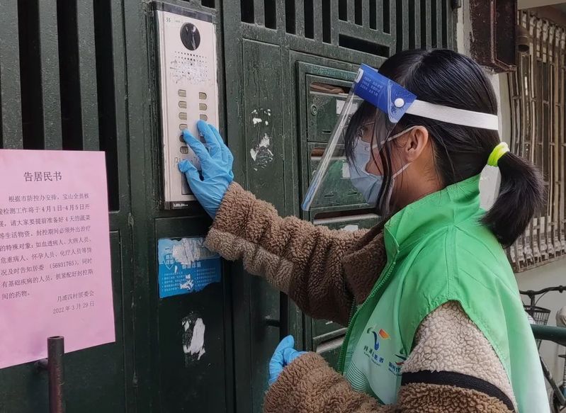 3月29日晚,在我正常下班后,就穿上志愿者外套与防护装备,开始了我的志愿活动。我接到的任务是统计楼道中每户人员的信息,了解每户在隔离期间居家的人数,记录行动不便的老年人以便后续提供上门核酸服务,还有在每次核酸的前一天帮助每个住户预约核酸检测,尤其是帮助不擅长手机操作的老年人。这项任务繁琐却并不艰巨,和我一起协同作业的是我们的楼组长。我们一户户敲响邻居的房门,虽然住在同一个社区里但大部分邻居都是第一次讲话,幸而每一位邻居都主动配合,非常好沟通。有一户人家甚至热情地帮我们去叫对门的邻居出来,协助我们工作。