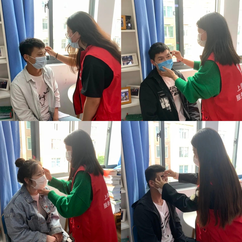 参加活动的同学络绎不绝,活动现场热闹非凡,工作人员根据每位同学的脸部特点进行眉毛修整,让眉毛看起来更加有立体感,使得面目轮廓更加和谐,既帮助大家美化了形象,又将每个人的面部特点和个性特征展现得淋漓尽致。整个活动中充满着欢声笑语,成为了疫情期间校园内一道亮丽的风景线。我们用自己的实际行动展现青春活力,绘制出青春底色,为疫情防控注入了温暖力量。