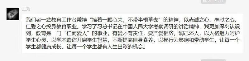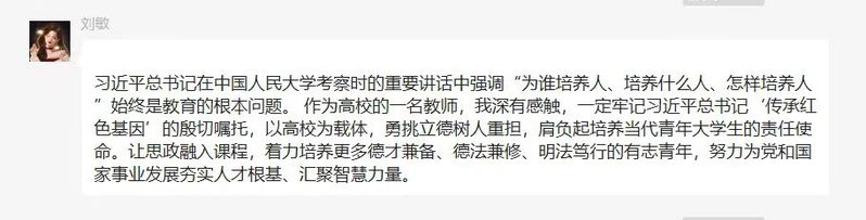 副校长罗宁发表感悟:习近平总书记在中国人民大学考察时的重要讲话高屋建瓴、思想深邃、内涵丰富,为我们落实立德树人根本任务、加快建设特色鲜明的高水平职业本科大学指明了前进的方向。我们要坚持和加强党对高校的全面领导,以党的政治建设为统领,构建学校高质量的党建工作体系。要坚持教育者先受教育,让有信仰的人讲信仰,把教师作为学校发展的第一资源。要进一步加强青年爱国主义教育,引导青年学生坚定不移听党话、跟党走,培养堪当民族复兴大任的时代新人。作为一名党员,自己将始终坚持用习近平新时代中国特色社会主义思想武装头脑,发挥党员先锋模范作用。