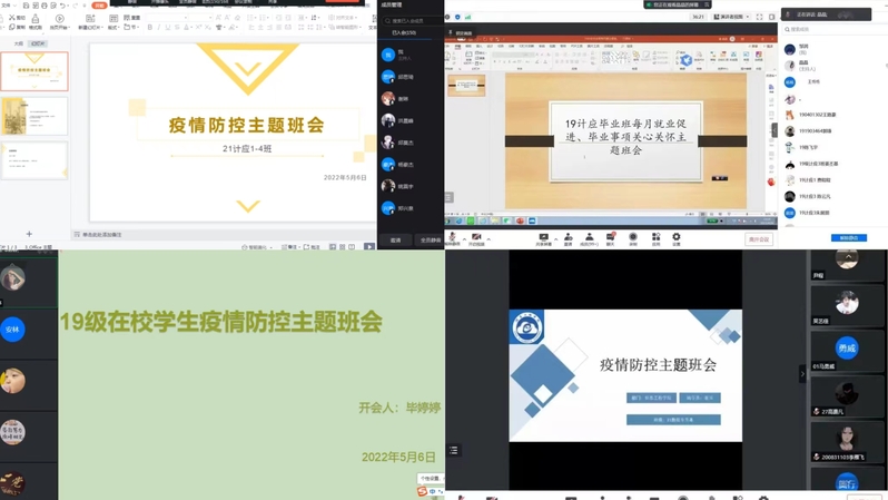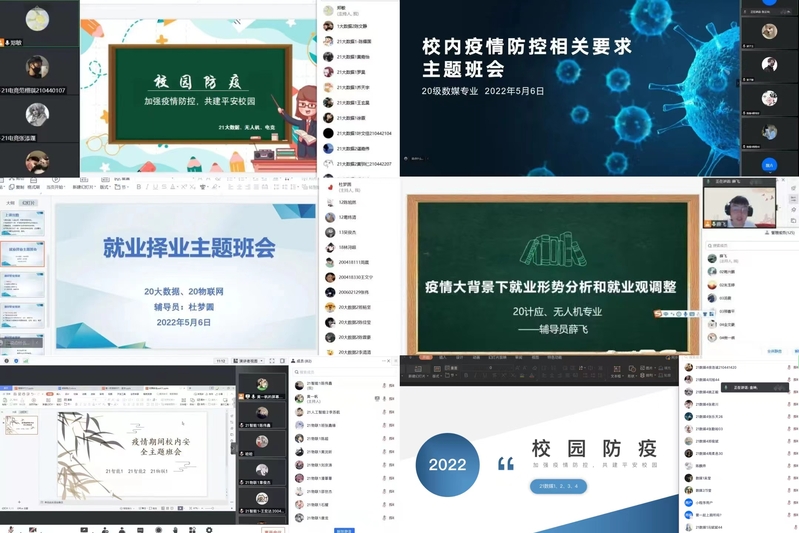 会议上,辅导员们从同学们的日常管理工作、线上学习情况、毕业就业工作情况、疫情防控工作情况四大方面进行展开。提及了各班目前的线上第一课堂学习、第二课堂实践、生活保障、心理疏通、择业就业等事宜,也再次重申了疫情期间学生管理的相关规定,严禁翻墙、翻越栅栏;正确佩戴口罩,坚持做好核酸检测;自觉不订外卖、不取快递;做好寝室防疫安全工作,室内通风、禁烟,搞好卫生,严禁使用违章电器等情况发生;网络信息方面仍需注意甄别和谨慎发言,做到不信谣、不传谣、不造谣;对违纪处分通报的同学,要引以为戒,坚决遵守学校各项规定。