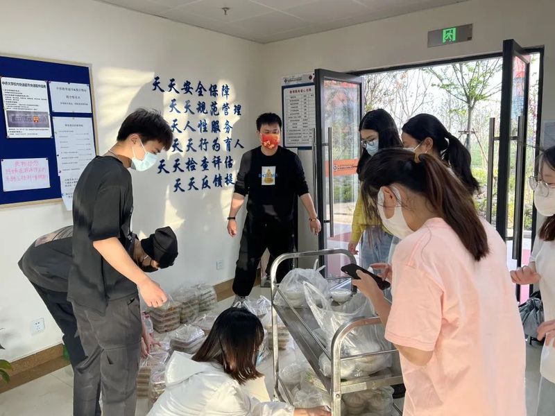 在学校第一次封控时,他肩负起协调全校师生发放饭菜的工作,统筹发放全校8000余人的一日三餐。在学校发放物资时,他也会亲历亲为,确保每一位老师、每一位学生都有拿到慰问品。面对学生们的感谢,他会摆手对学生说道:“我不是物资的提供者,我只是物资的传递者,同学们真正应该感谢的是政府、是学校,更要学会感恩每一位帮助了你们的人。希望你们也能积极主动作为,在战疫中贡献自己的青春力量!”