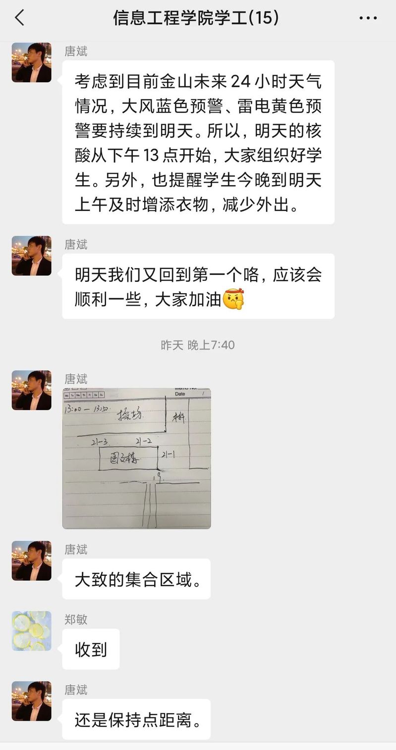 大家会亲切的称呼唐老师为“唐爸”,自核酸常态化以来,每一天他都会陪在同学们身边,等大家做完再压队陪大家一起做,虽然只是一个小举动,却在无形之中给了同学们一份心安。温暖又随和的唐书记,得到了不少信工学子的赞许。面对日常核酸检测,他说道:“我不觉得每天陪伴同学们一起做核酸是枯燥乏味的事情,每天我们能在校内以此特别的方式相遇,给予彼此一个笑容或是一句问候,对于疫情下的我们是别样的温暖。”