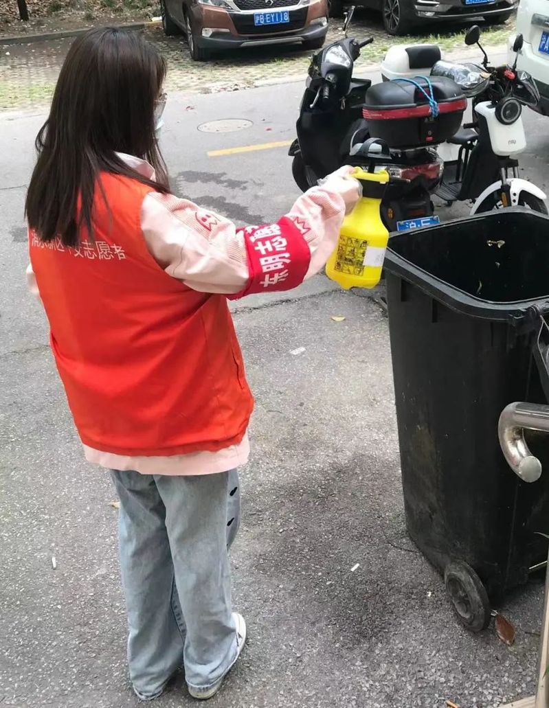 我主要的服务是在楼栋下当志愿者,当好“守门员”。禁止楼里的居民走出楼栋,做到足不出户。早上我要拿消毒水在楼外楼内包括每楼走廊、楼梯、电梯里都要进行全面的消杀,让居民生活在一个相对安全的环境中。到我们楼做核酸时,我就要按每户的门铃叫他们下楼,让他们排好队把他们带到规定区域做核酸。有时规定做抗原,我就挨家挨户发放抗原。