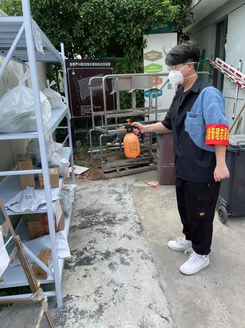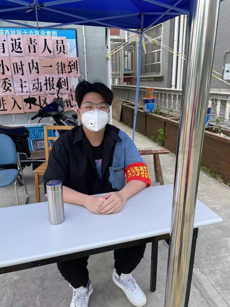 我是21数媒本科2陈李阳。3月中旬,我从学校回到家中进行居家隔离线上学习。期间,我经历了一点小插曲。由于我家楼上有一名租客是密切接触者,所以我们进行了2+12的隔离管控,我深刻体会到了志愿者的不容易。为了我们这些管控的居民,大部分志愿者要忙东忙西,他们又是中年人居多。所以,在管控解除后,全市封控期间,4月初我便主动报名成为了一名社区疫情防控志愿者。