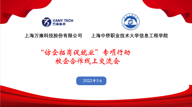 为认真贯彻落实党中央、国务院关于高校毕业生就业工作的决策部署,全面深化校企合作、为毕业生开拓更多就业创业岗位和机会,促进毕业生高质量就业。信息工程学院访企拓岗促就业专项行动校企交流会,于5月19日在线上举行,线上走访了上海万雍科技股份有限公司。
