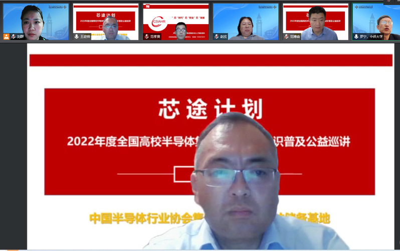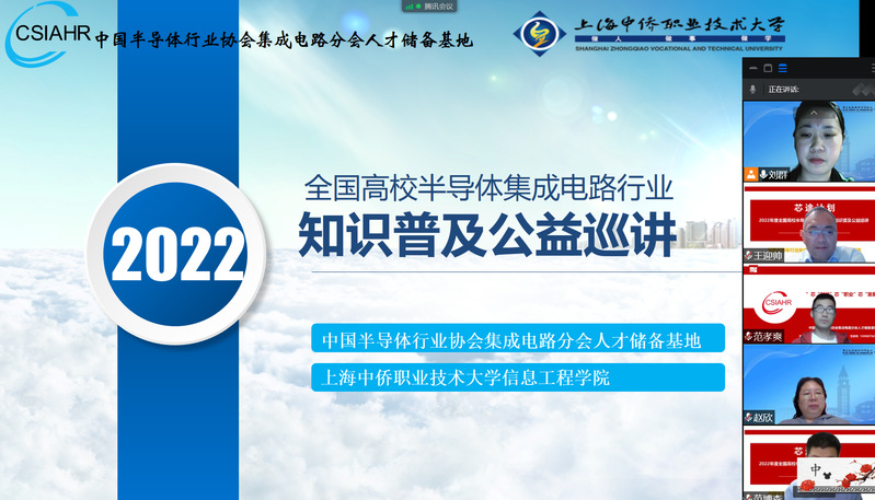 2022年5月24日18:30-20:00,由中国半导体行业协会集成电路分会人才储备基地主办的“2022年度全国高校半导体集成电路行业知识普及公益巡讲”走进中侨大学,走进信息工程学院并圆满举办,中国半导体行业协会集成电路分会人才储备基地副主任的王迎帅,基地就业与职业发展中心两位老师;中侨大学副校长罗宁,信息工程学院院长赵欣,党总支书记刘群,学院300余名师生代表线上参会。