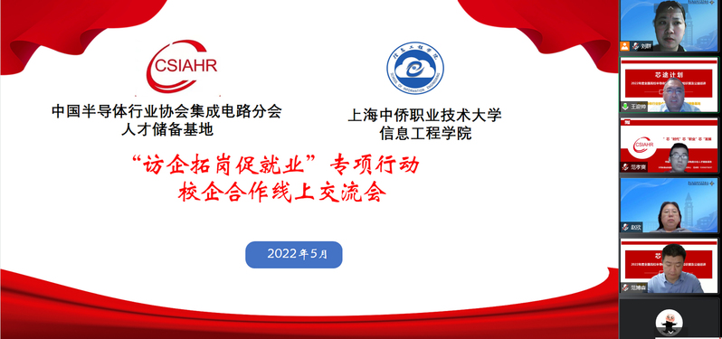 为认真贯彻落实党中央、国务院关于高校毕业生就业工作的决策部署,全面深化校企合作、为毕业生开拓更多就业创业岗位和机会,促进毕业生高质量就业。信息工程学院访企拓岗促就业专项行动校企交流会,于2022年5月24日18:30-20:00在线上举行,由中国半导体行业协会集成电路分会人才储备基地主办的“2022年度全国高校半导体集成电路行业知识普及公益巡讲”走进中侨大学,走进信息工程学院并圆满举办,中国半导体行业协会集成电路分会人才储备基地副主任的王迎帅,基地就业与职业发展中心两位老师;中侨大学副校长罗宁,信息工程学院院长赵欣,党总支书记刘群,学院300余名师生代表线上参会。