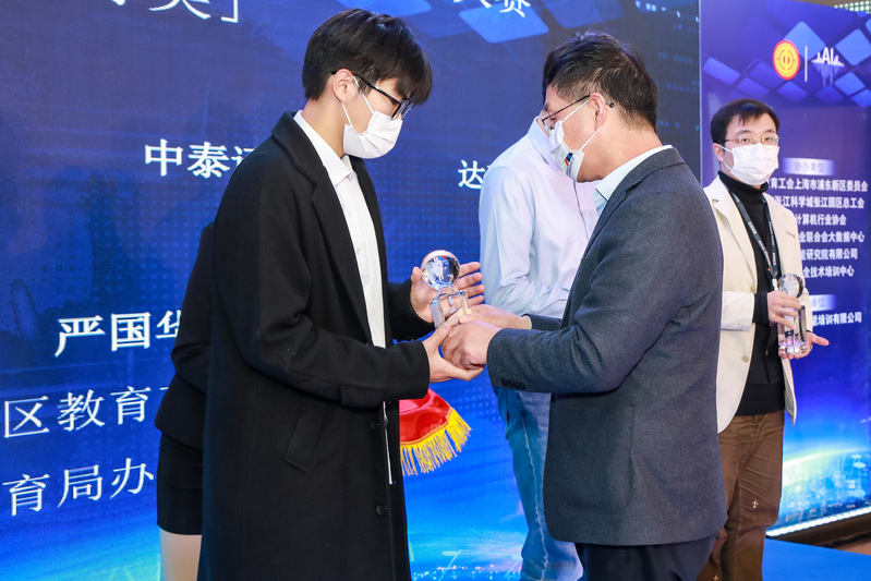 11月30日下午,在浦东新区工人文化宫举办了“2022浦东新区人工智能创新应用大赛”颁奖仪式。至此,为期两个月的大赛胜利闭幕。本届大赛指导单位为上海市总工会,由上海市浦东新区总工会、发改委、科经委、教育局、人保局、上海张江(集团)有限公司主办,协办单位包括中国教育工会上海市浦东新区委员会、上海市张江科学城张江园区总工会、上海计算机行业协会、上海现代服务业联合会大数据中心、上海人工智能研究院有限公司、上海海盾安全技术培训中心等;由上海华盾职业技能培训有限公司承办。