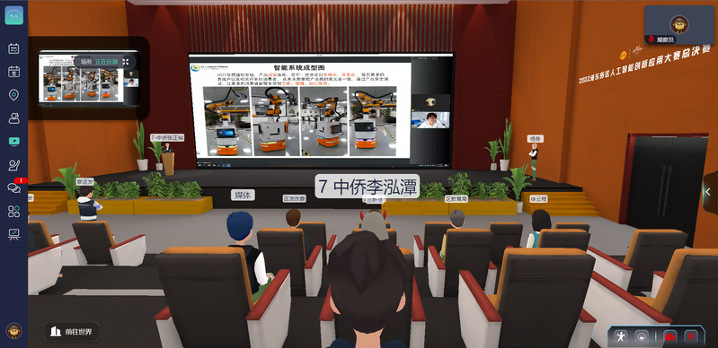 本届大赛决赛现场放进元宇宙空间,形式新颖,充分体现了大赛“人工智能应用创新”这个核心要素;大赛共吸引了来自上海、北京、山东、浙江、广东、辽宁、四川以及美国等地的113支团队参与比拼,大赛影响范围进一步扩大;第三是参赛项目质量提升,可转化价值高。今年大赛重点聚焦融合创新,在核心赛事创新应用赛的命题设计中,紧紧围绕浦东经济社会发展需要,突出人工智能在文体、数字金融、数字鸿沟、医疗、物流、社区治理等人工智能应用领域的场景应用。
