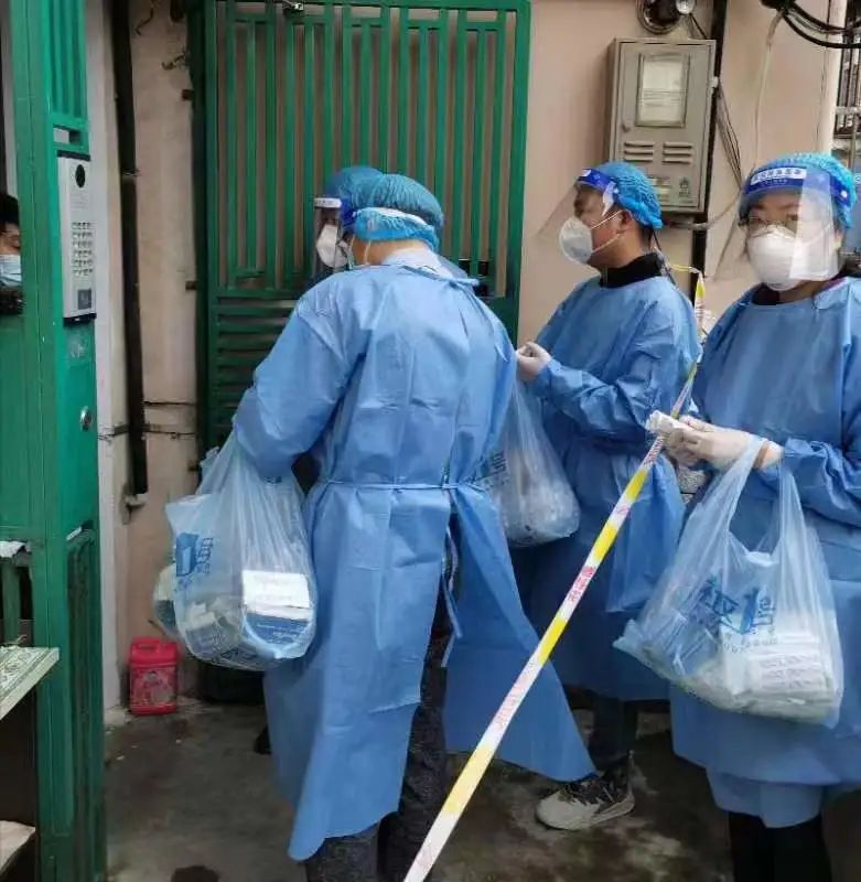 在询问小区居委会后,我参与进了小区志愿者的工作,帮助居委会进行核酸检测相关工作。主要负责核酸检测现场的秩序维护与检测完成情况的清查。每次,我都会按照要求穿戴以及脱下当天的新医用防护套装。