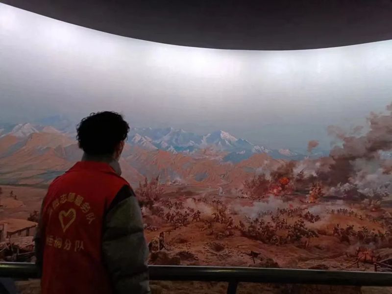 而展陈馆内详细全面地展示了西路军的革命历史。景区是一座园区式建筑,既是纪念馆,也是一座公园,同时还是革命先烈的烈士陵园。园区面积很大,长约400米,宽度将近200米,园内是开阔的广场,在广场上有英雄群雕、纪念碑、英烈公墓和展陈馆几个主要建筑,基本分布在进门之后的中轴线上。园内种植了大面积草坪和很多松柏树供游客观赏,在草坪和树林之间有几座烈士纪念亭,整体环境十分优美。