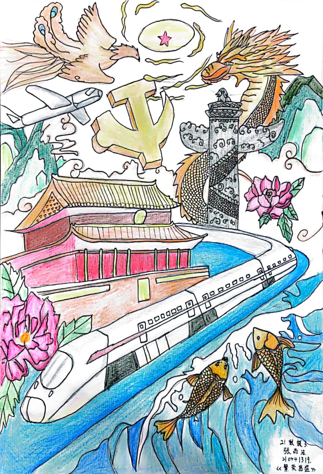 作品介绍天安门象征着民族精神,高铁象征着中国的科技技术,龙凤呈祥寓意着国泰民安,万事顺遂,会带来一片祥和之气。