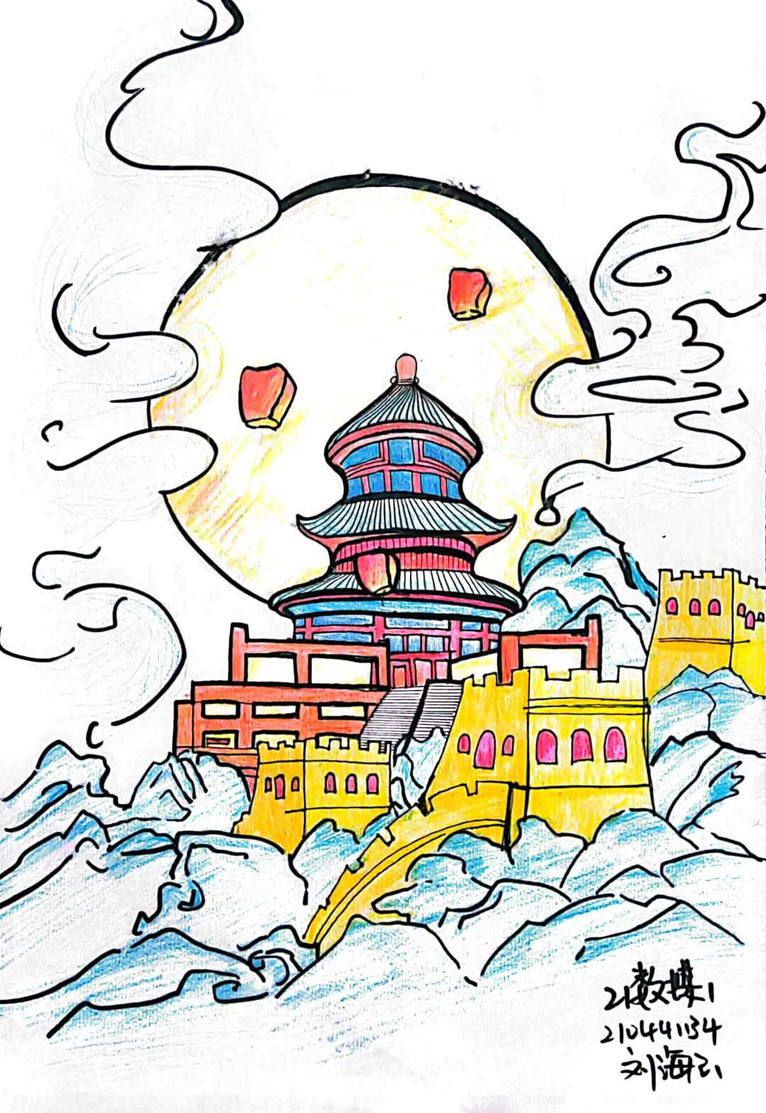 作品介绍灯笼代表生命,鸽子代表希望,华表柱代表民主,麦子代表丰收,愿祖国山河无恙,繁荣昌盛。