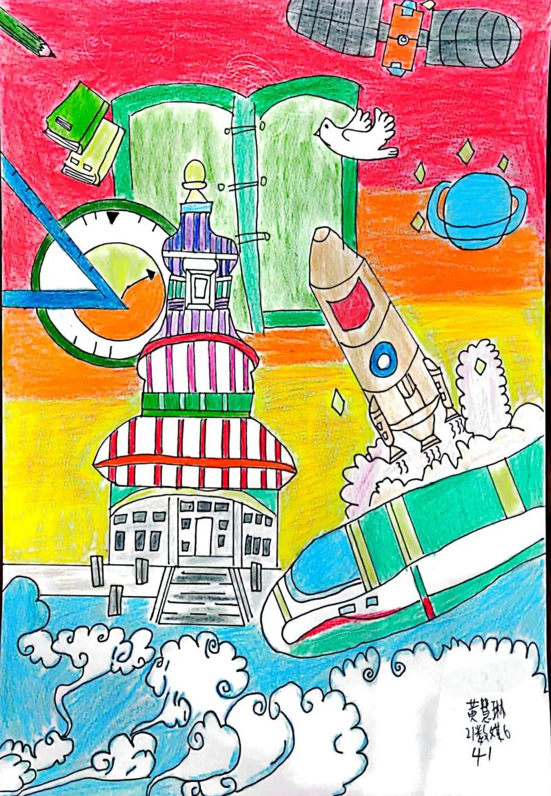 作品介绍: 书代表的知识,时钟代表时间(寓意着珍惜时间),火箭代表梦想,大海代表无尽的知识。