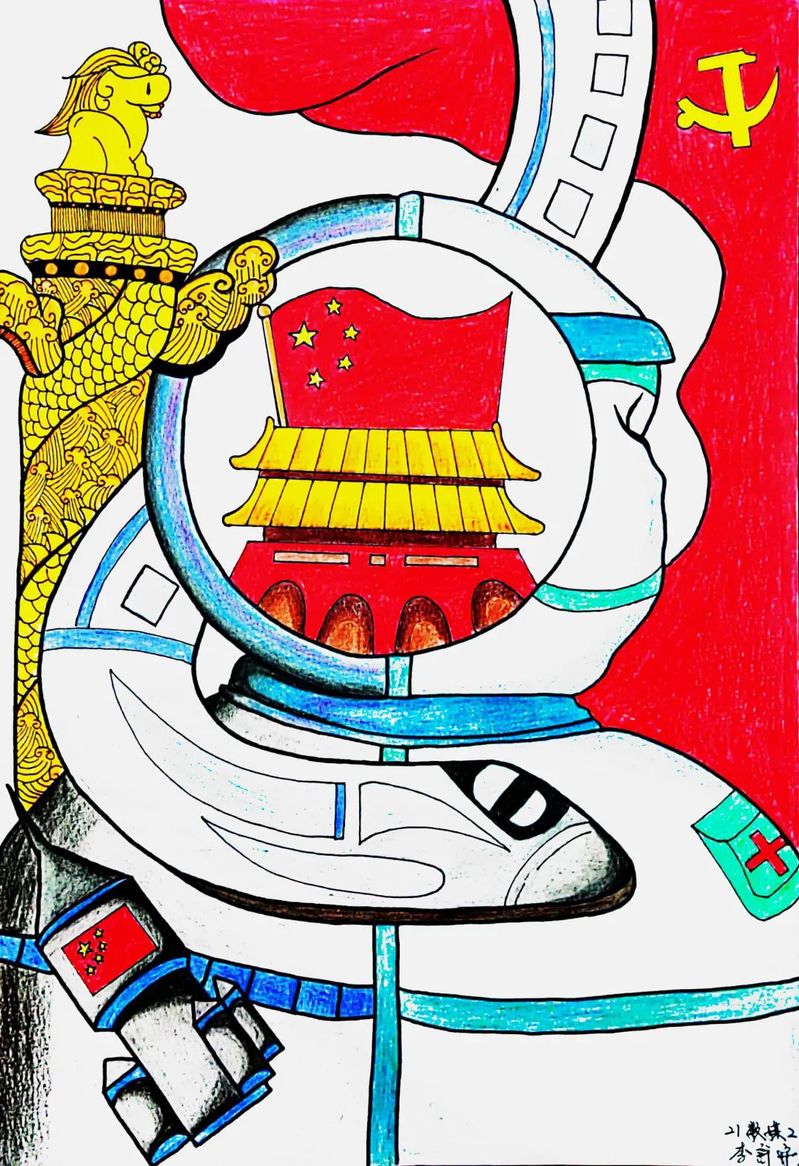 作品介绍: 生在红旗下,长在春风里,目光所致,皆为华夏,五星闪耀为信仰,航天梦助推强国梦,火箭升起的烟雾,那群白鸽从湛蓝的天空飞过,只有祖国强大,才能保证人民对和平的期望。