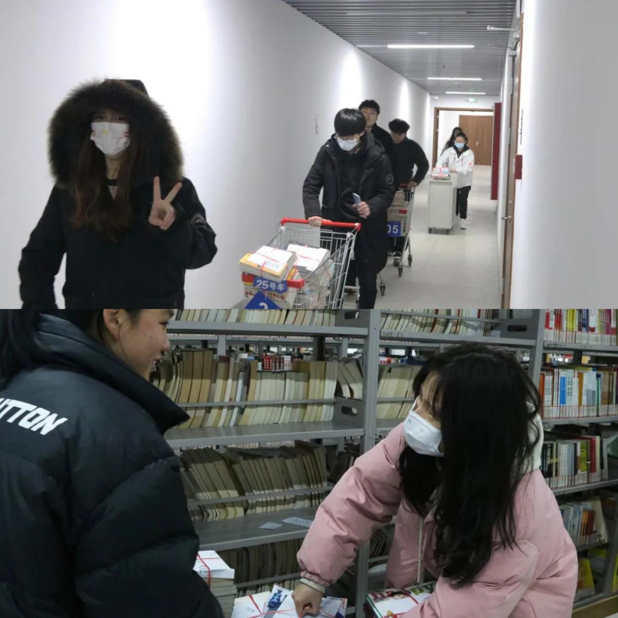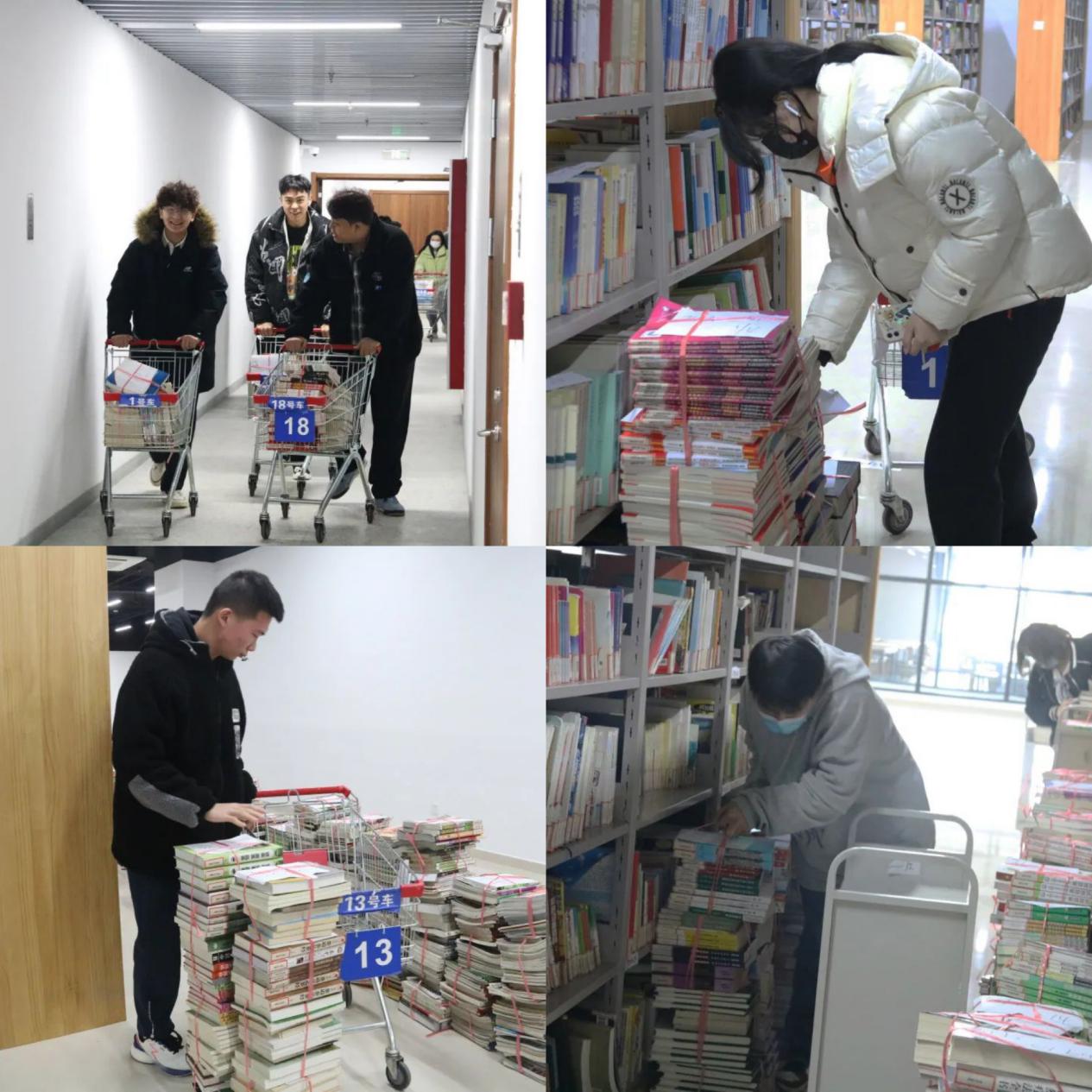 大家根据类别有序归类,齐心投入搬运书籍、贴标签、打包等繁琐的整理工作中。经过大家几天的努力,书架干净整洁、书籍摆放有序、新图书馆的面貌也焕然一新,馆内处处充满着青春的活力与新鲜的色彩。