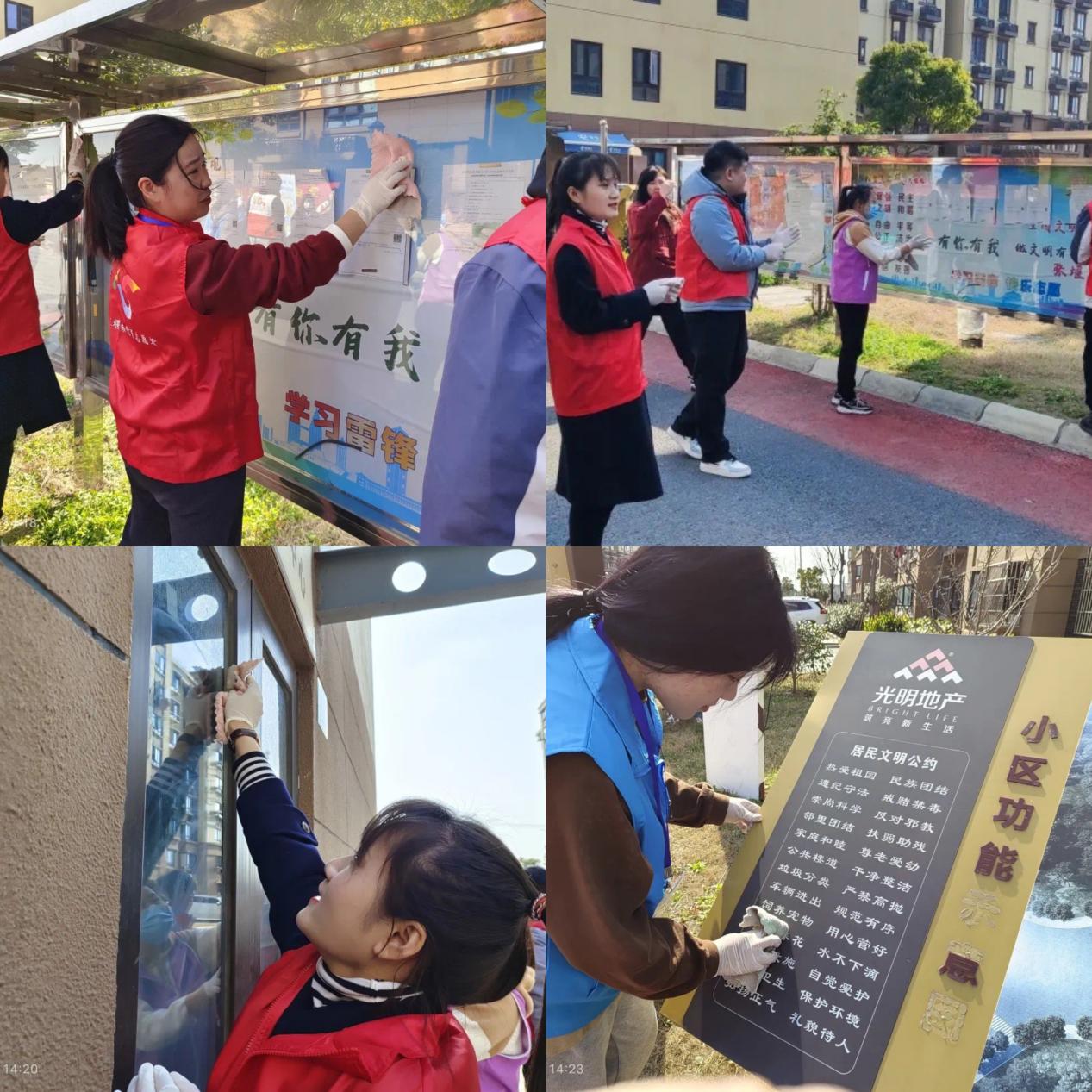 大家拿着自备的劳动工具,对所在小区公告栏、警示牌、道路等区域进行了全面打扫和清理,大家不怕苦,不怕脏,干的热火朝天,为社区营造了干净整洁的环境。弘扬雷锋精神,引领社会新风,践行志愿服务,真正把雷锋精神学到深处、把为群众办实事的意志落到实处。