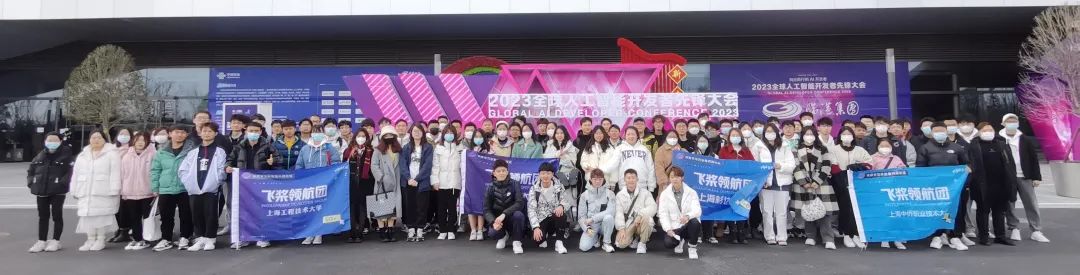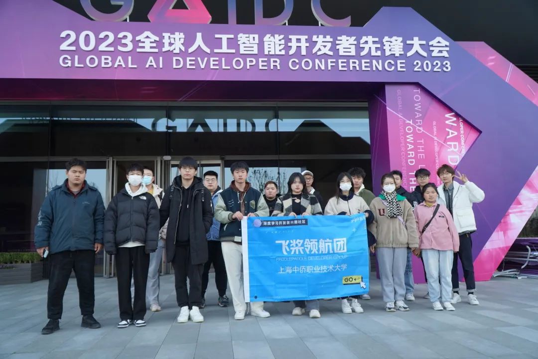 百度飞桨兴趣团是飞桨开发者兴趣社区近距离接触百度AI黑科技,参与组织决策,建立AI学习与交流圈子,收获能力与成长!上海中侨职业技术大学也是众多百度飞桨兴趣团的成员单位之一,在这里聚集了对人工智能和深度学习的爱好者。2月25日至26日,“2023全球人工智能开发者先锋大会(GAIDC)”在上海临港中心举行。在团长孙浩浩同学的带领下,中侨百度飞桨兴趣团20余名信息工程学院学子参加了此次大会。