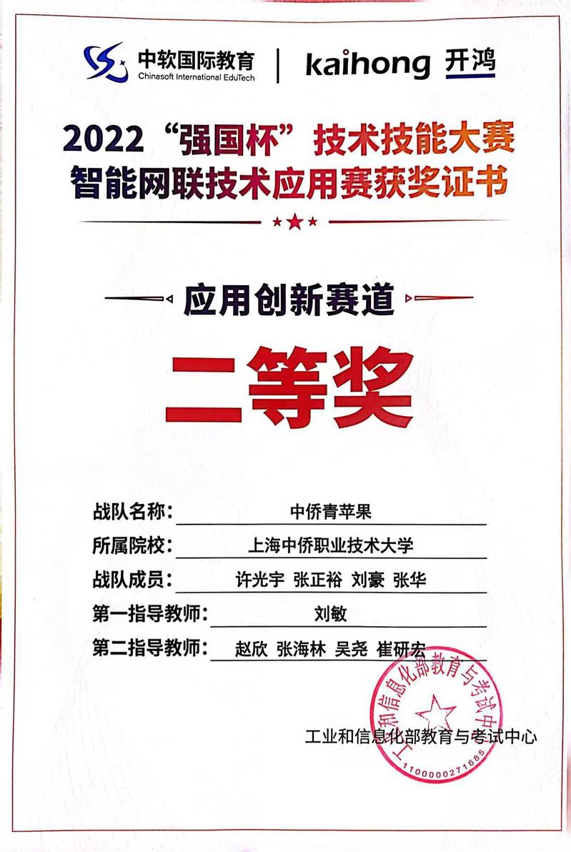 恭喜许光宇等同学获得2022“强国杯”技术技能大赛智能网联技术应用赛应用创新赛道二等奖