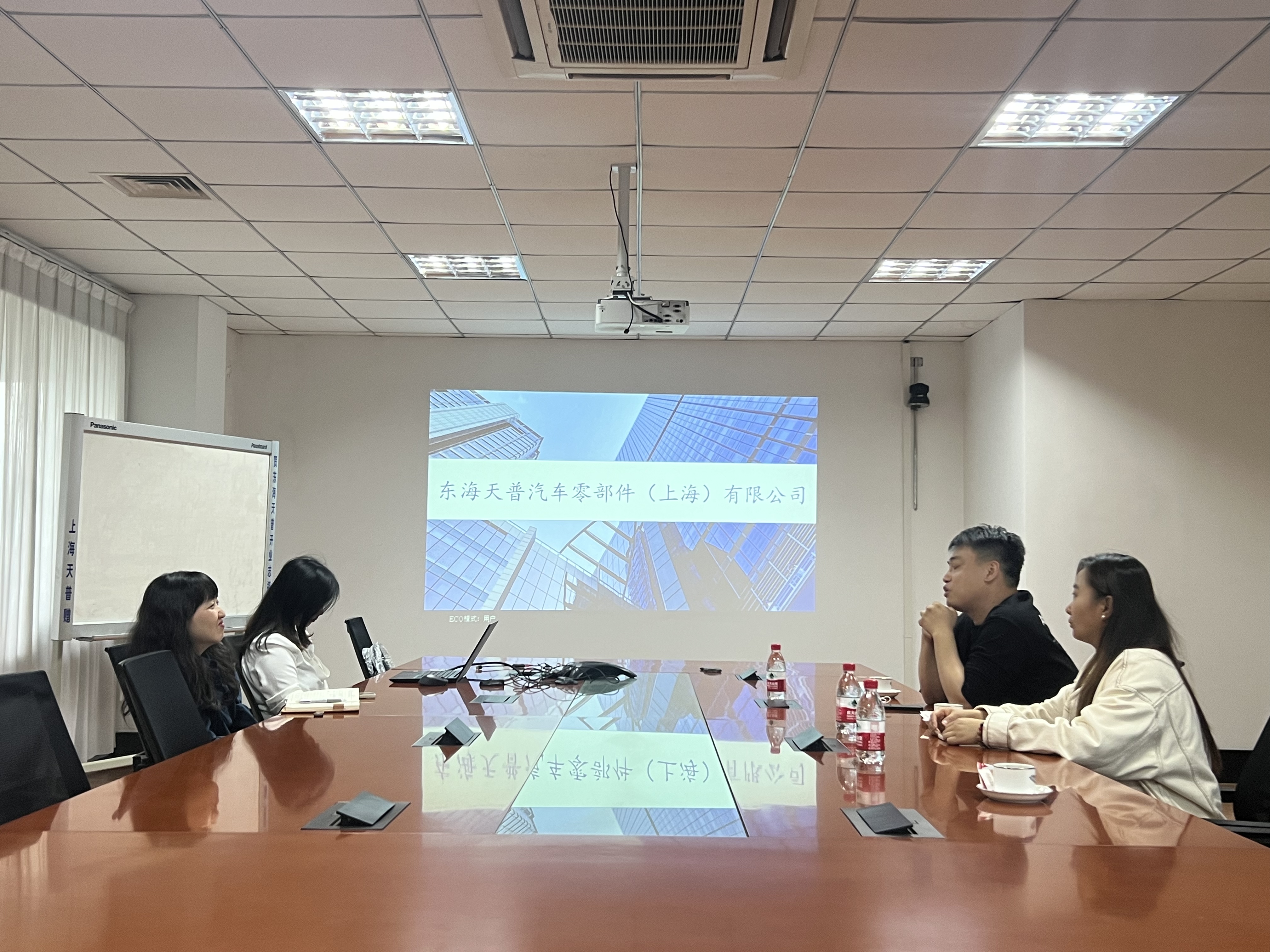 东海天普汽车零部件(上海)有限公司总监向唐斌和两位老师讲解了公司招聘的流程、岗位及晋升等相关内容,主要讲解了公司的招聘流程的校招通道一般分为春招和秋招,面试通过后进行实习。本次交流为23届和24届的毕业生就业指明了方向。
