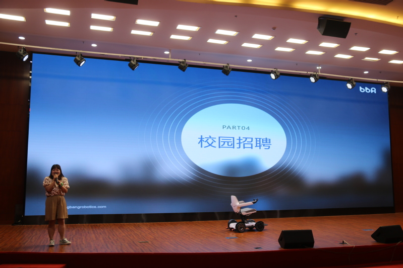 会上,上海邦邦机器人有限公司营销经理纪冠任致辞发言,他表示欢迎在场同学们的到来,鼓励同学们积极就业。