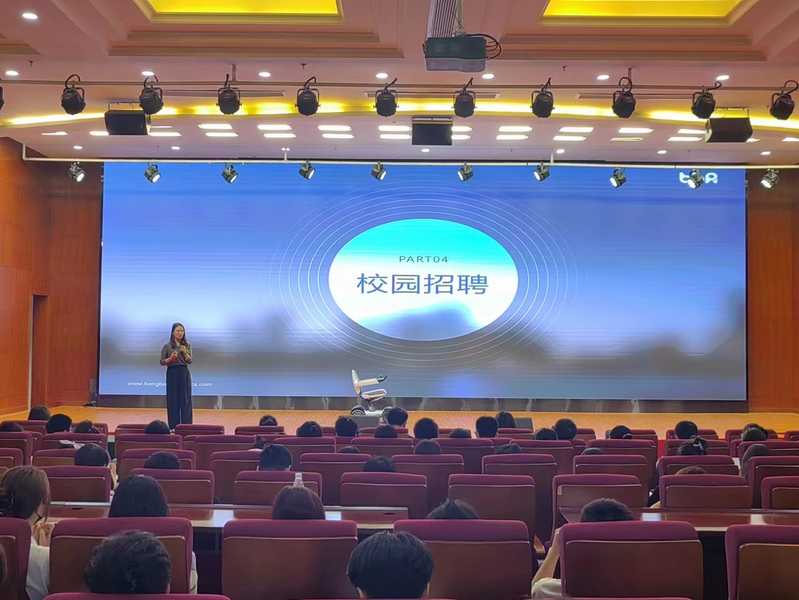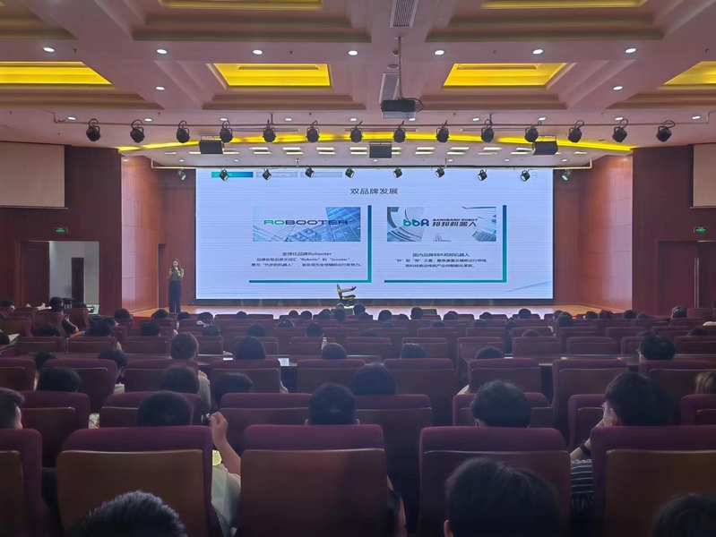 线上营销负责人黄亚萍分别从营销、客户、技术三个大板块为同学们进行了讲解。通过详细的公司介绍、核心技术与产品、品牌实力等各个方面的介绍,让同学们对于上海邦邦机器人有限公司也有了更深入的了解。