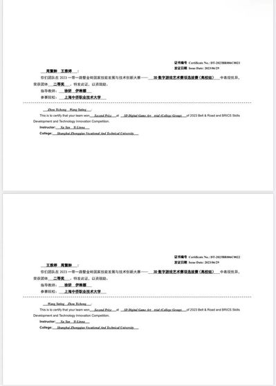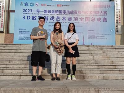 经过与全国60余支队伍激烈的比拼,由信息工程学院徐妍、伊琳娜两位老师指导的20数字媒体技术本科王雅婷、22数字媒体技术专升本周繄翀两位同学组成的参赛队前期以优秀的角色设计概念和绘画水平线上提交参赛作品获得二等奖成绩,最终拿到前往重庆参加总决赛的资格,决赛当天经过4小时连续比赛喜获三等奖的成绩。