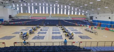 开幕式结束后,全体人员在体育馆门口合影留念。