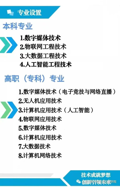 信息工程学院主动对接国家战略需求,立足新工科建设,与时俱进,积极进行专业布局,目前设有数字媒体技术、物联网工程技术、大数据工程技术、人工智能工程技术4个本科专业,均具备全日制“专升本”招生资格,其中数字媒体技术专业为上海市“中本贯通”试点专业,大数据工程技术专业为上海市一流专业群专业;设有计算机应用技术(上海市085重点建设专业)、数字媒体技术、物联网应用技术、大数据技术(上海市教委双证融通试点专业)、计算机应用技术(人工智能)、无人机应用技术(2023年重点发展专业)、数字媒体技术(电子竞技与网络直播)7个高职专业及方向。所有专业均为产教融合型专业、教育部1+X试点专业(获批1个教育部1+X考点、12个试点),学院现有在校学生2500余人。信息工程学院将现有高职专业逐步升格为职业本科专业,同时将高职专业与本科达到有效衔接,促进学生技能和学历有效提升。