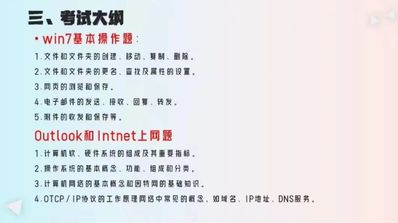 随后,赵琳学姐为我们列出了考试大纲,共有Win7,Outlook和Intnet,Word文档,Excel表格,PPT五大类及每一类软件需要掌握的内容。