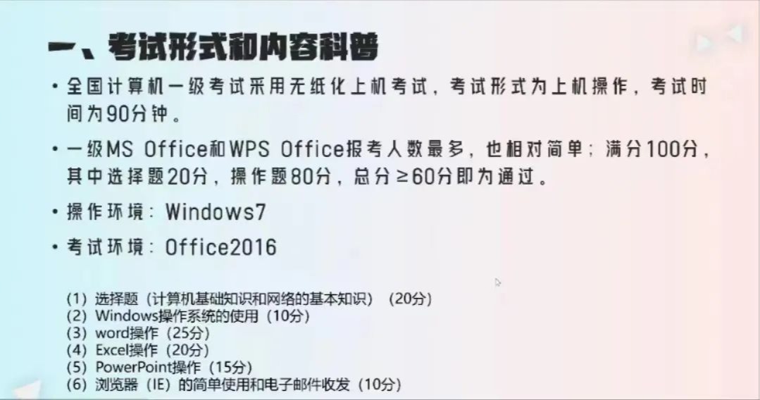 全国计算机考试为无纸化机上操作,时间为90分钟,满分为100分,分为选择题20分,操作题80分,60分及以上则通过。