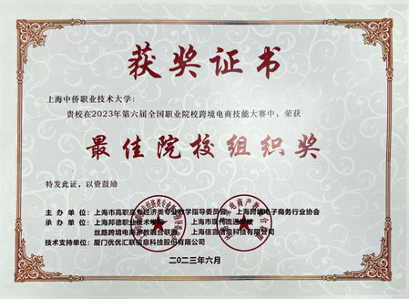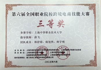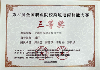 近日,第六届全国职业院校跨境电商技能大赛决赛落下帷幕,来自全国170所院校、1451支团队、5425名学生参与比赛, 722支团队进入国赛决赛,经过4个小时的激烈角逐,信息工程学院学生发挥出色,斩获3个二等奖、7个三等奖,共计38名同学获奖,上海中侨职业技术大学荣获“最佳院校组织奖”称号。