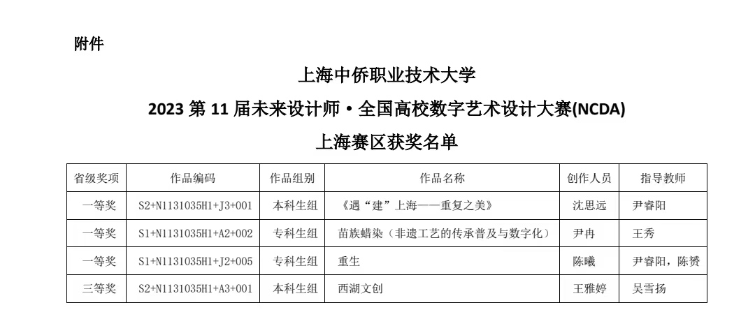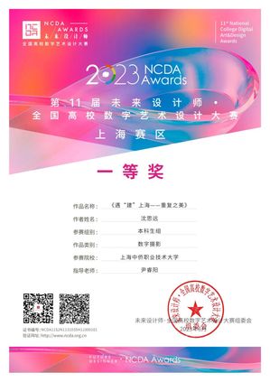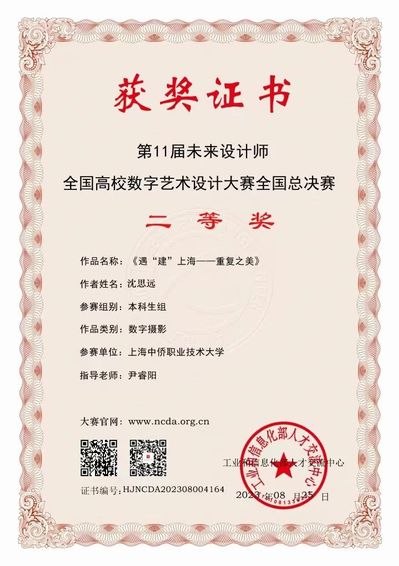 同时由尹睿阳老师指导的沈思远同学的《遇“建”上海-重复之美》作品获得全国二等奖。