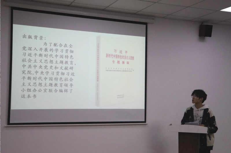 《习近平新时代中国特色社会主义思想专题摘编》由中央党史和文献研究院、中央学习贯彻习近平新时代中国特色社会主义思想主题教育领导小组办公室联合编辑。23计应1班蔡兴亚同学介绍该本书内容摘自习近平总书记2012年11月15日至2023年3月15日期间的报告、讲话、说明、演讲、谈话、文章、贺信、批示等410多篇重要文献,分18个专题,共计1031段论述。其中部分论述是第一次发表。蔡兴亚同学深切认识到,我们青年们应该原原本本,逐字逐句的深刻领悟“两个确定”的决定性意义,增强 “四个自信”,做到“两个维护”,为中华民族的伟大复兴发光发热。