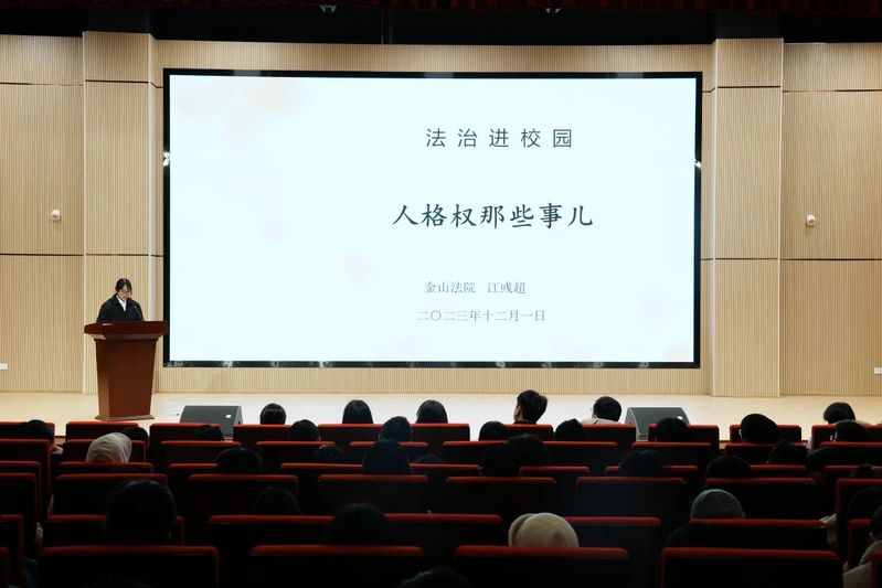 特邀普法专家金山法院江彧超做普法讲座《人格那点事》。江警官结合一个个具体的真实案例,以案释法,以法论事,向大家介绍了较为重要的人格权:隐私权、性骚扰,个人信息保护、人生安全保护令、PUA。同时系统地讲述了面对财产或人格损失时应当正确维护自己的权益。她用通俗易懂的语言,为大家讲解法律知识,帮助同学们更好地理解法律条文和案例。最后江警官表示,希望大家做一个遵纪守法的好公民。