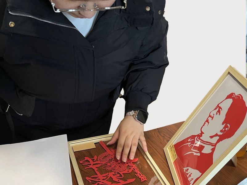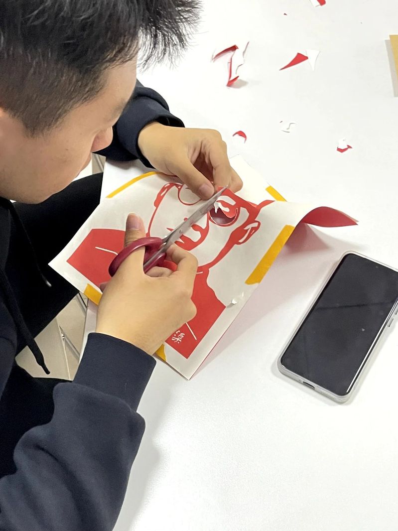 顾天吉同学作为信息工程学院初级党校的学员,她萌生了一个想法,带领小组成员一同学习红色文化,一同感受剪纸的魅力。一张红纸,一把刻刀,先辈们剑眉星目的面貌在自己的手中渐渐的呈现,成就感满满。小组成员们都是第一次剪纸,在组长的带领下不断尝试、不断学习,剪的愈发熟练。