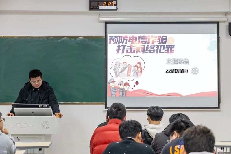 鉴于近期电信网络诈骗案件高发,学生被骗案值越来越大,为提高同学们的防诈骗意识,避免不必要的财产损失,信息工程学院组织开展防范电信网络诈骗主题班会。
